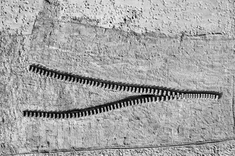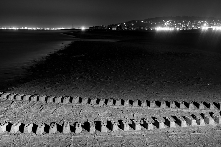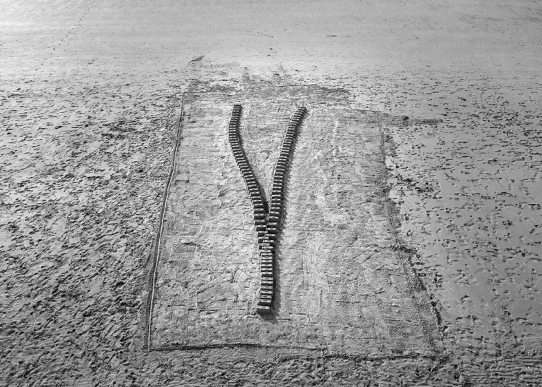 Performance imaginée par Tina DASSAULT et Dominique CHATELET et phographiée par Michel DENANCE. Architectures de sable sur la plage de Deauville. 2019