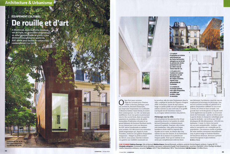 Transformation et extension d'une maison bourgeoise du 19e en vue d'y installer un Centre d'Art Contemporain. 116 rue de Paris, Montreuil (93). Livré en Septembre 2013 Michel DENANCE photographe.